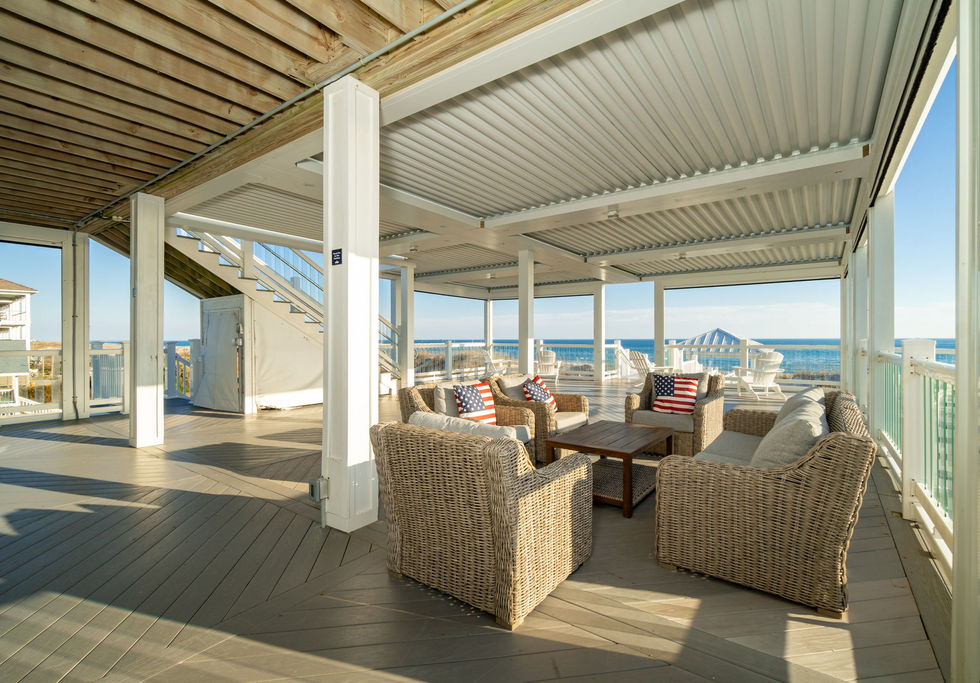 Vinyl screens surrounding the deck - can remotely enclose the entire space.